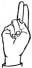 На ћирилици написано ОЗРЕН БАТОЋАНИН састоји се из 14 слова [?]. Исписано ћириличном једноручном азбуком за глувонеме: